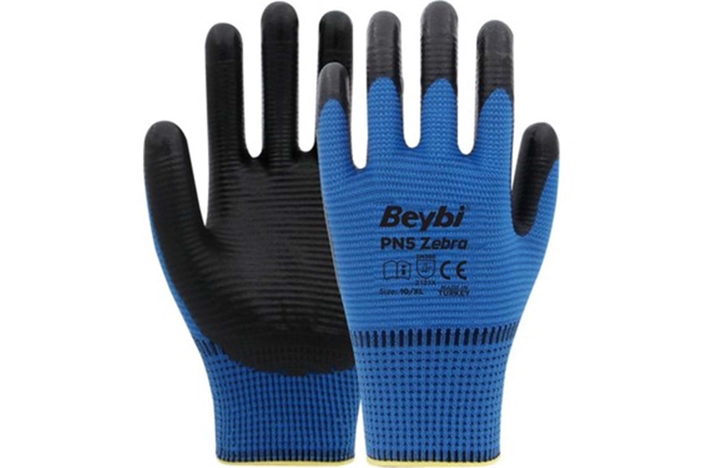 Ürün Açıklaması BEYBİ Eldiven Nitril Tırtıklı Zebra Mavi-Siyah, endüstriyel ve profesyonel kullanım için tasarlanmış dayanıklı nitril eldivendir. Tırtıklı yüzeyi sayesinde kavrama ve tutuşu artırır. Yağ, yağmur ve hafif kimyasallara karşı dirençli yapısı elleri güvenle korur. Montaj, depo, temizlik ve ağır işlerde kullanım için uygundur.