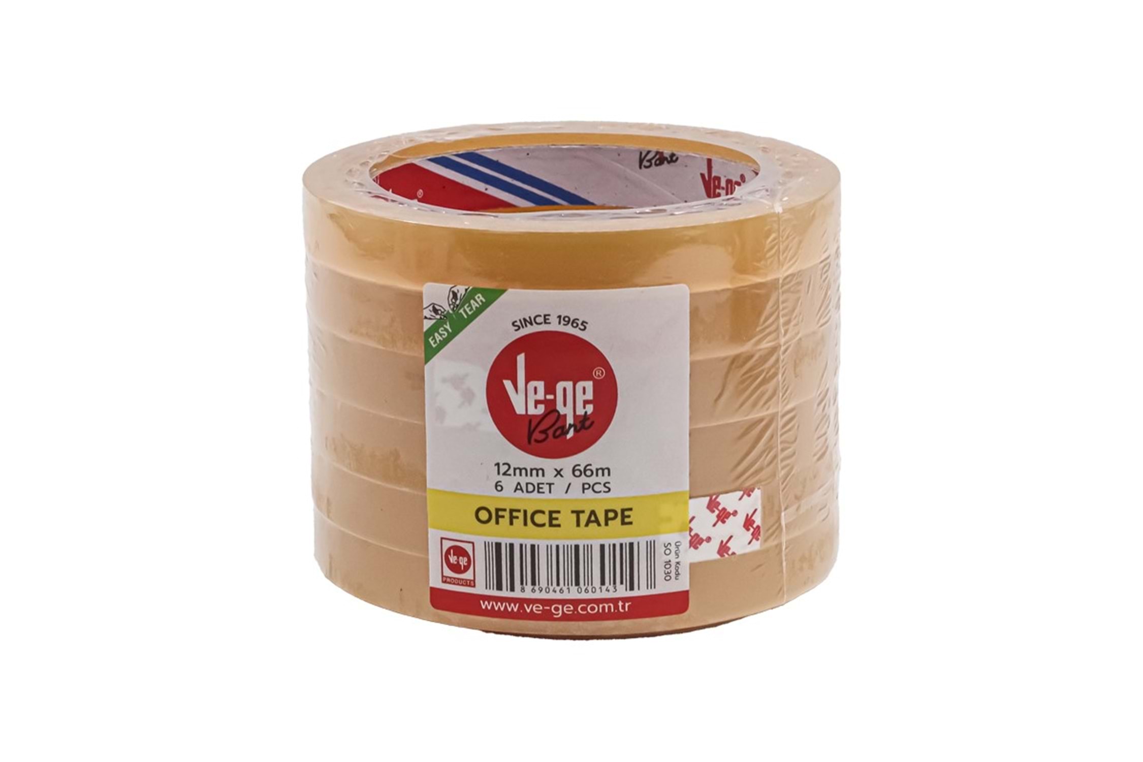 VE-GE Bant Office Tape 12x66 mm Sarı, günlük ofis ve ev kullanımında yapıştırma ihtiyaçlarını karşılayan dayanıklı bir banttır. 6’lı paket içeriği ile ekonomik kullanım sağlar. Kolay kesilebilir ve güçlü yapışkan özelliği sayesinde kâğıt, karton ve hafif malzemelerde güvenle kullanılabilir.
